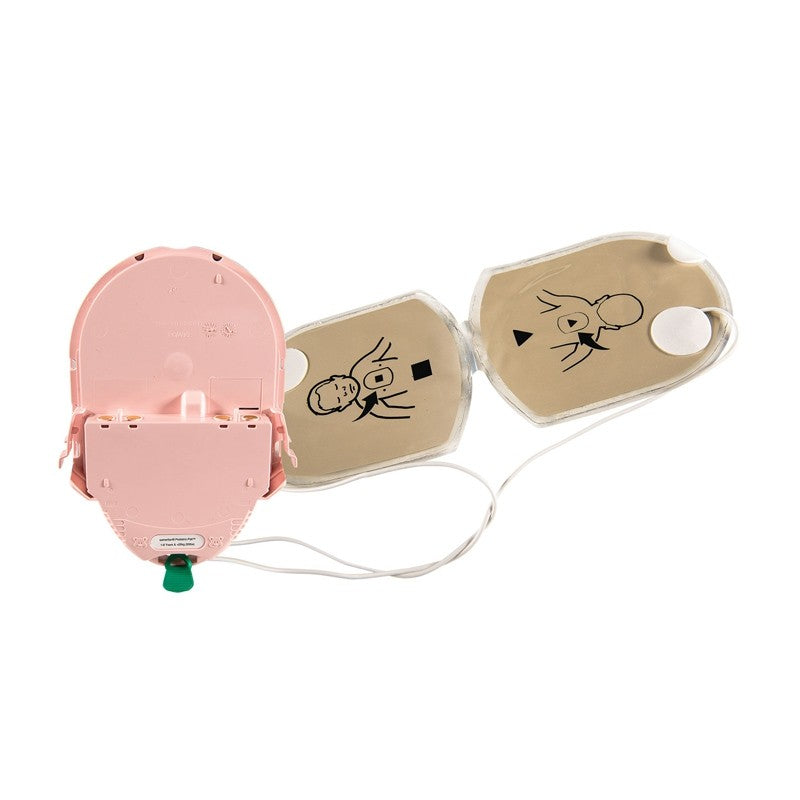Pediatric battery and pads in one simple replacement cartridge so only one expiring component to worry about. For use on patients younger than eight years of age weighing less than 25 kg/55 lbs. For use with the HeartSine defibrillator range: PAD 350P, PAD 360P and PAD 500P